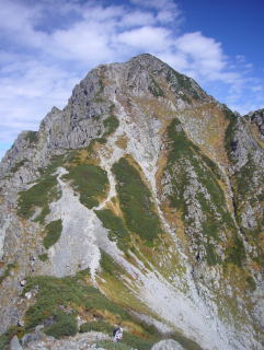 | 奥鐘山 西壁 | 水平歩道。人が歩いているのが見える |