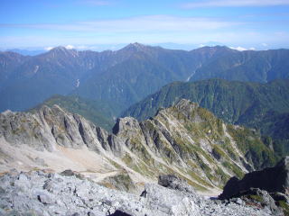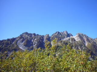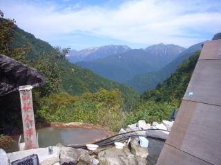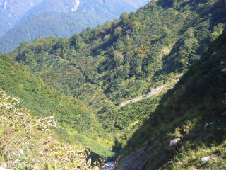 4時30分起床。朝4時に起きようと言っていたのに寝坊した。I氏が起きない。叩き起こして朝飯を食い撤収。6時に剣沢小屋出発。剣沢を降りていくと雪渓がでる。スプーンカットに足を置いていけばアイゼンがなくても下れるがしりもちをつきたくなかったらアイゼンをつければ完璧だろう。 源次郎尾根、平蔵谷、長次郎谷などI氏の説明を聞き、7時50分に真砂沢ロッジ到着。そのまま通過。二俣に向かう。途中三の沢、四の沢、二股などで水が豊富にあるのでここで水を汲んで仙人新道の登りにはいる。最初が急登。しばらく登ると視界があけ、八峰が眼前に見える。I氏が色々説明してくれるのだが、快晴で暑いし、ひたすら登りなので、疲れて頭が回らない。やっとの思いで仙人峠に着き、木道を下ると仙人池ヒュッテだ。バテバテなので、ラーメンを注文して紅葉の裏剱を眺めながら食べる。なかなか見られない風景なので記念写真撮りまくり。なごり惜しいが先は長いので、仙人谷に降り仙人温泉を目指す。谷沿いの道なので、結構気を抜けない。仙人温泉に12時半に到着し1000円払って入浴する。ぬる目のお湯で最高に気持ちがよい。後立の山並みをみながら温泉に入れるなんてなんという贅沢。ああ、ここに泊まりたいと思いつつ、いやいや阿曽原でビール飲むぞと気合を入れて13時12分出発。