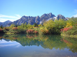 | 仙人池に映る紅葉の裏剱 | 後立連峰をみながら仙人温泉に入る |