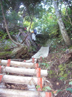 | 雲切新道。源泉の横を通って右岸を登っている | こんな急斜面が連続します |