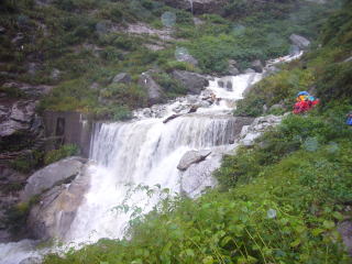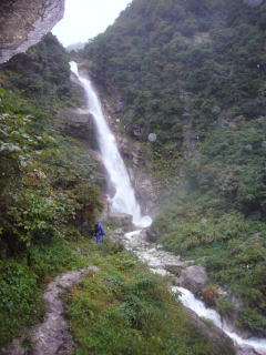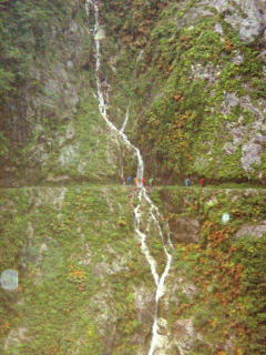 | こんな滝が連続して現れる | 折尾谷。砂防提にトンネルがあるが出口が滝をかぶる |