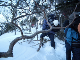 厳冬期とはいえ好条件に恵まれました。覚悟はしていたものの、私にとっては最上級のラッセルに泣かされました。着実に登りきれる体力、適切なルートを見極められる判断力の重要さを再認識させられました。4人の個性が緩やかに絡みあい、支えあい、ハードだが楽しい冬山登山になりました。皆さんに感謝します。