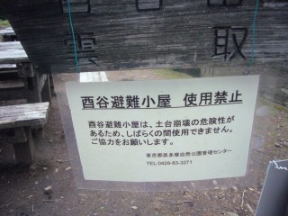 | 一杯水避難小屋 | 酉谷避難小屋は使用禁止のようだが。。 |
