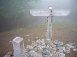 | 鷹ノ巣山山頂 ガスで視界なし | 一人打ち上げ |