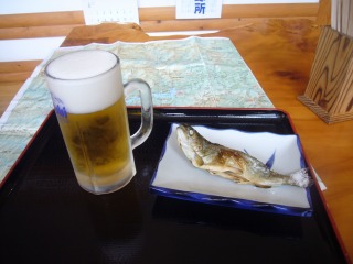 青梅街道に下りると、道路向かいに以前立ち寄ったことある温泉があった。そこで温泉に入りさっぱりした後、奥多摩駅の2階で、山行の無事を祝って一人で乾杯する。なぜかソムリエ田崎真也がいた。そういえば大魔王さんも真也だったなぁとほくそえんでいると田崎さんがこっちをじっと見ていた。