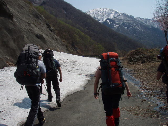 「いやー、この山きついね」と汗を拭いている。我ら後輩を慰問しにきたのだという。会の同期である笹山先輩を伴い後輩に紹介、5+2、7名のオール北稜隊が結成された。主役つりしはその座をスターに譲り、宴会はヒートアップしていく。久しぶりに現役に合流された笹山OB、美女達の飲みっぷりに目を細めている。珍しく酒量を少なくしてきた部長は先輩の差し入れに大満足、タダ酒に酔いしれ、ああこりゃこりゃ。記憶はないが、凍死するぞとテントに担がれていったらしい。